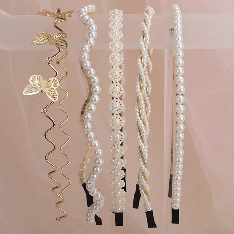 Băng đô kim loại đính cườm ngọc trai linh hoạt này có 10 kiểu dáng khác nhau như ngọc trai, kim loại, nơ và băng đô đính cườm pha lê sáng bóng. Mỗi phong cách có thể đáp ứng các nhu cầu khác nhau và phù hợp để mặc hàng ngày.