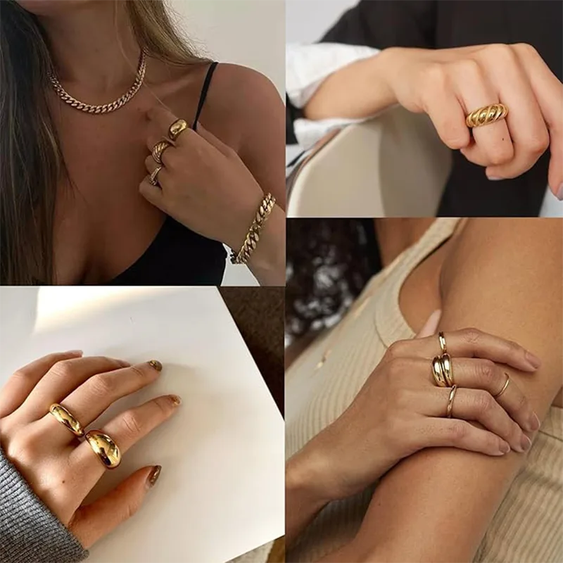 Bộ nhẫn vàng, Những chiếc nhẫn thời trang mạ vàng thật dành cho nữ này có nhiều kiểu dáng khác nhau, bao gồm hình trái tim, hình con dấu, hình vuông, hình ống, hình dày và hình xoắn. Có rất nhiều loại để đáp ứng các nhu cầu ăn mặc khác nhau của bạn và tạo ra vẻ ngoài đẹp nhất cho bạn!