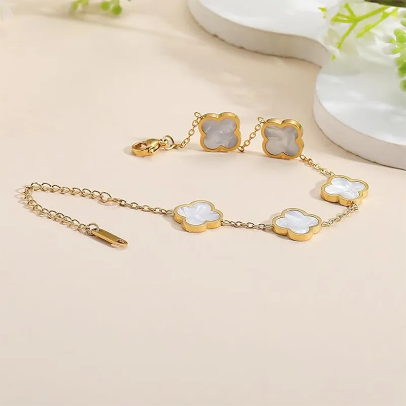 Người ta nói rằng trong số hàng vạn cây cỏ ba lá, chỉ có một cây là cỏ bốn lá. Bốn lá tượng trưng cho tình yêu đích thực, sức khỏe, danh tiếng và sự giàu có! Có cỏ bốn lá mang ý nghĩa may mắn. Vòng tay hợp kim may mắn hợp thời trang tinh tế dành cho nữ có thể dùng làm quà tặng cho vợ, bạn gái, mẹ và con gái. Nó cũng thích hợp cho các lễ hội như Giáng sinh, Lễ tạ ơn, Ngày của Mẹ, sinh nhật và Ngày lễ tình nhân.